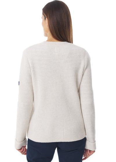 This cosy midweight cardigan is 100% wool. It's in a classic conservative style with a turn-up on the sleeves, true quality. It's a lovely rich cream colour, the photos don't do it justice!