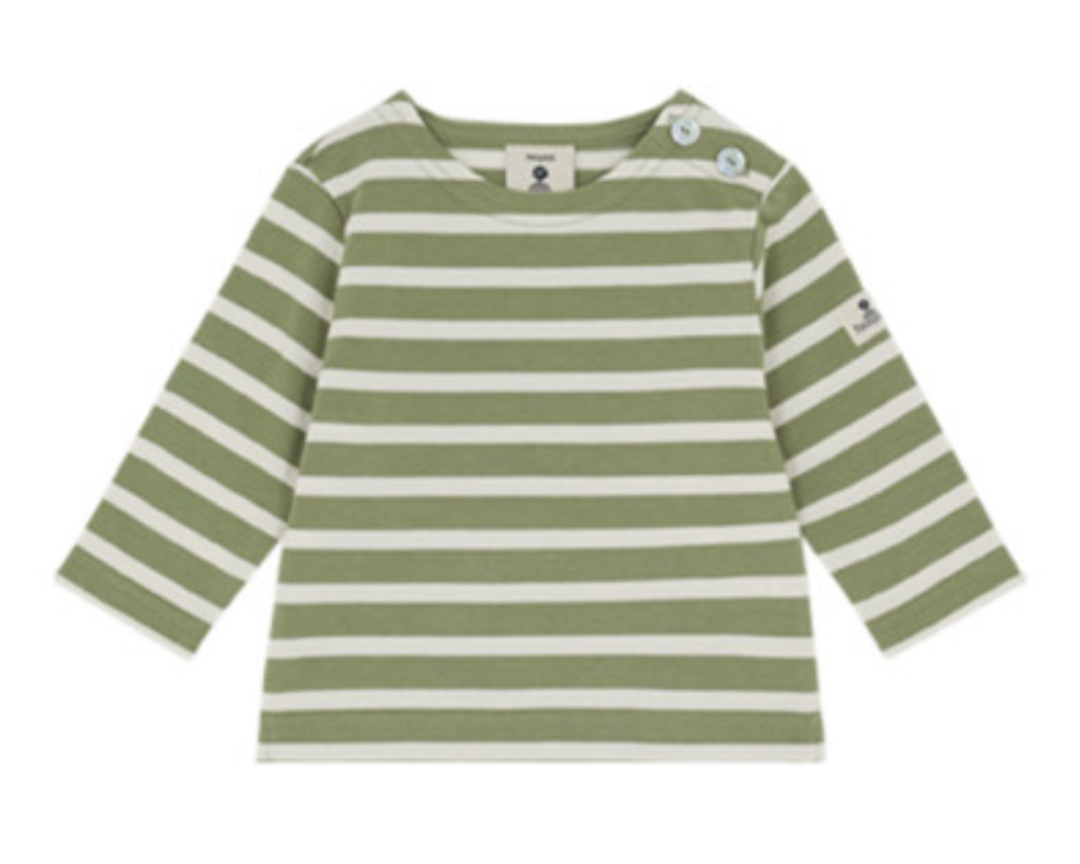 Breton style striped baby top with button fastening. Made from 100% high quality jersey cotton, 285g. Wash at cool 30 degrees.