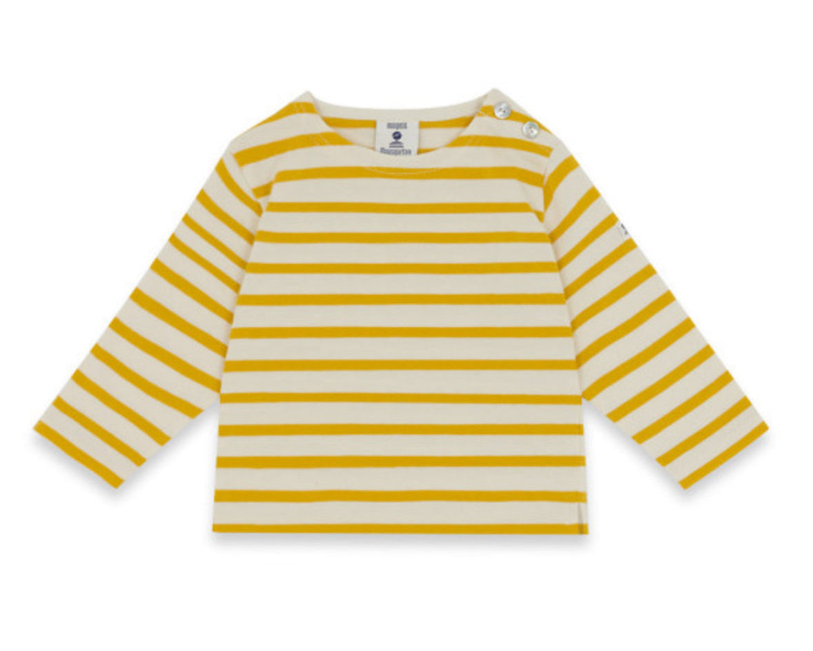 Breton style striped baby top with button fastening. Made from 100% high quality jersey cotton, 285g. Wash at cool 30 degrees.