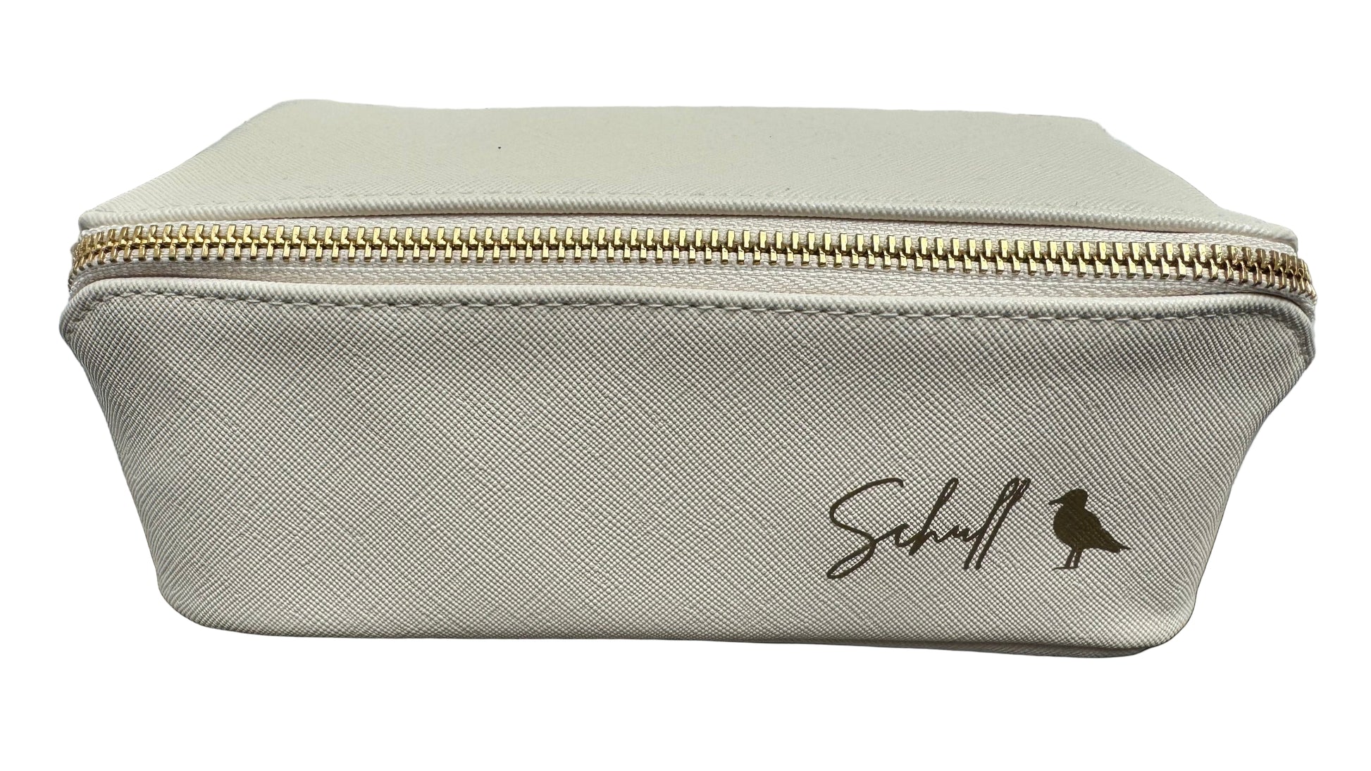 This handy bag/case is PVC outer with fabric lining, could be used for makeup, accessories, pencils etc.