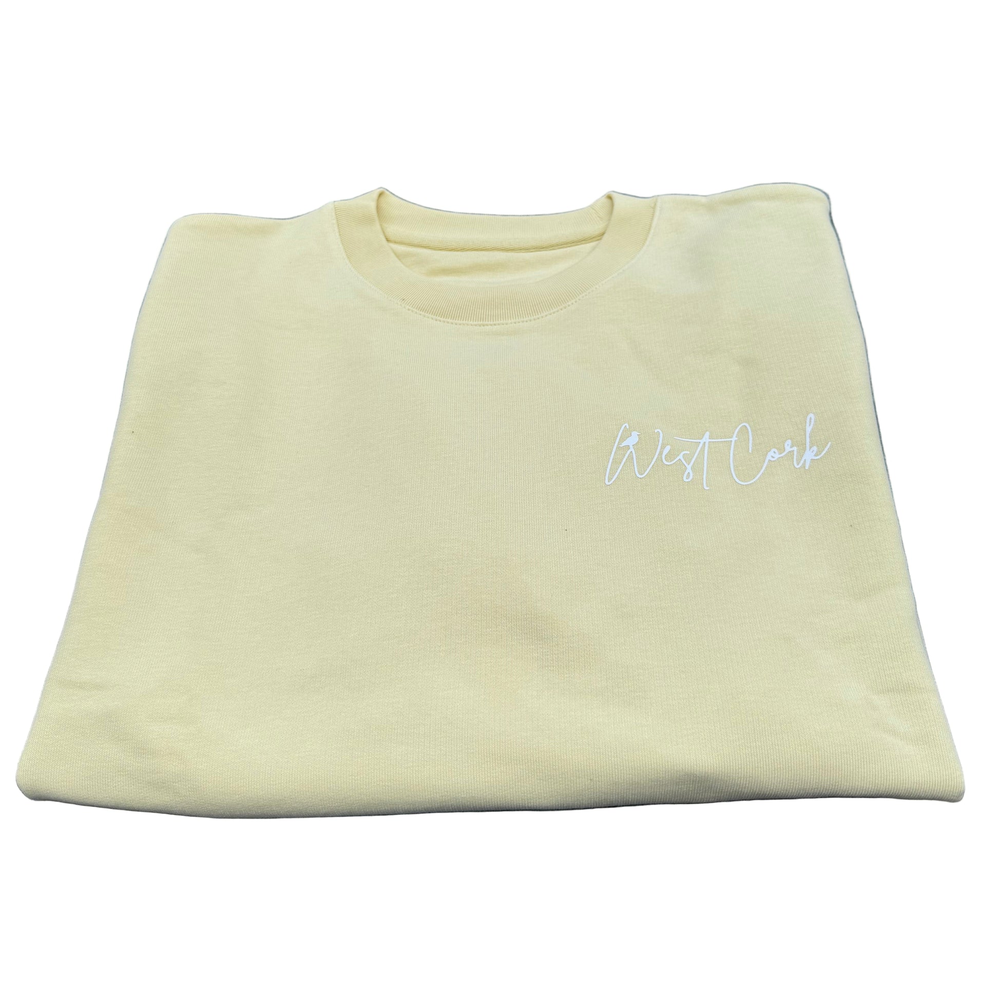 Gorgeous soft butter yellow sweatshirt with small logo on chest and up the back. 75% Cotton 15% polyester